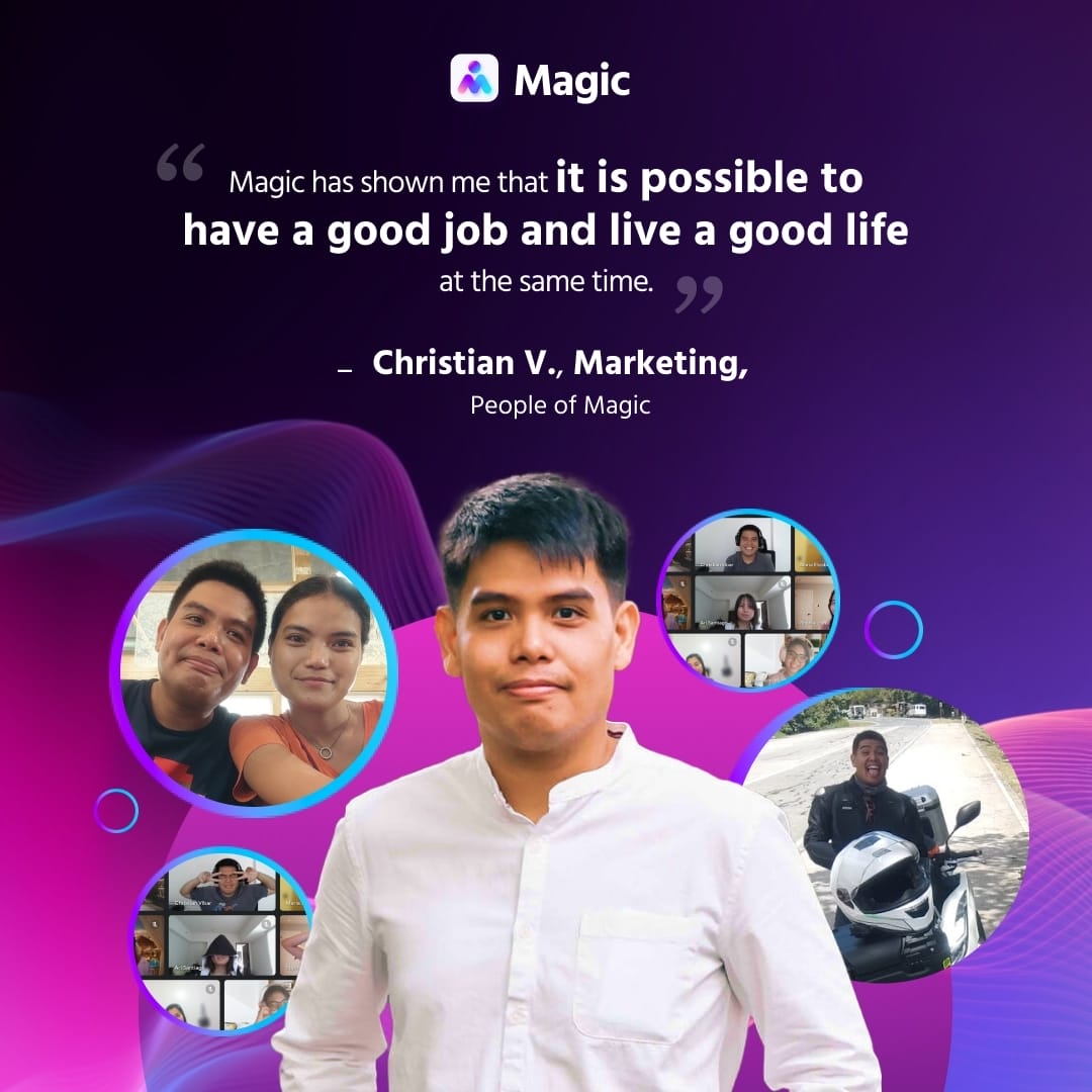 Work-life balance – a real gem at Magic. Christian’s got the scoop on managing his own schedule, kicking stress to the curb, and working from wherever he wants. Mental, physical, and spiritual health? On point. Read along to get the reality Magic’s culture.