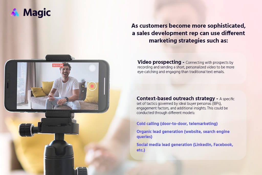 As customers become more sophisticated, a sales development rep can use different marketing strategies, such as: