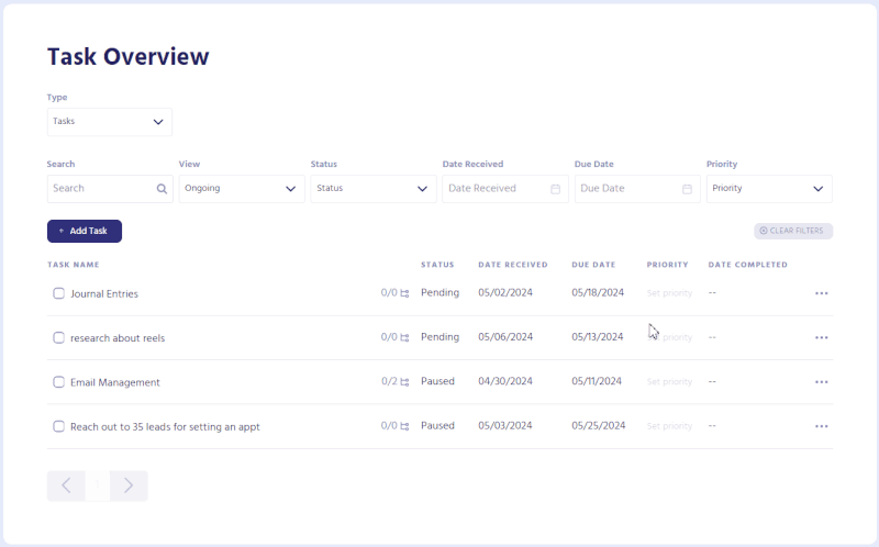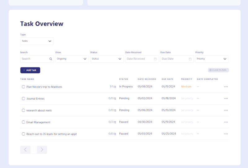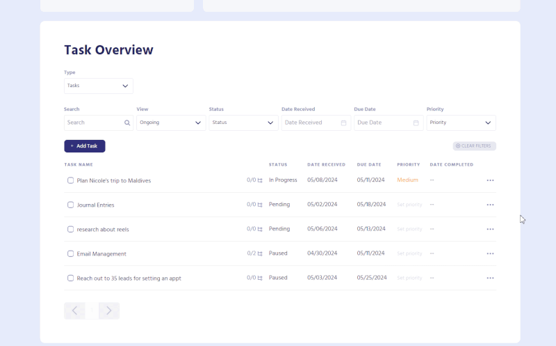 You can also add subtasks, overview, task updates, and next actions to your main task. Including these details ensure tasks are clear, progress is tracked, and help prioritize your next actions. Follow these steps to add subtasks and task updates: