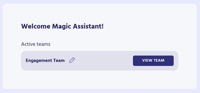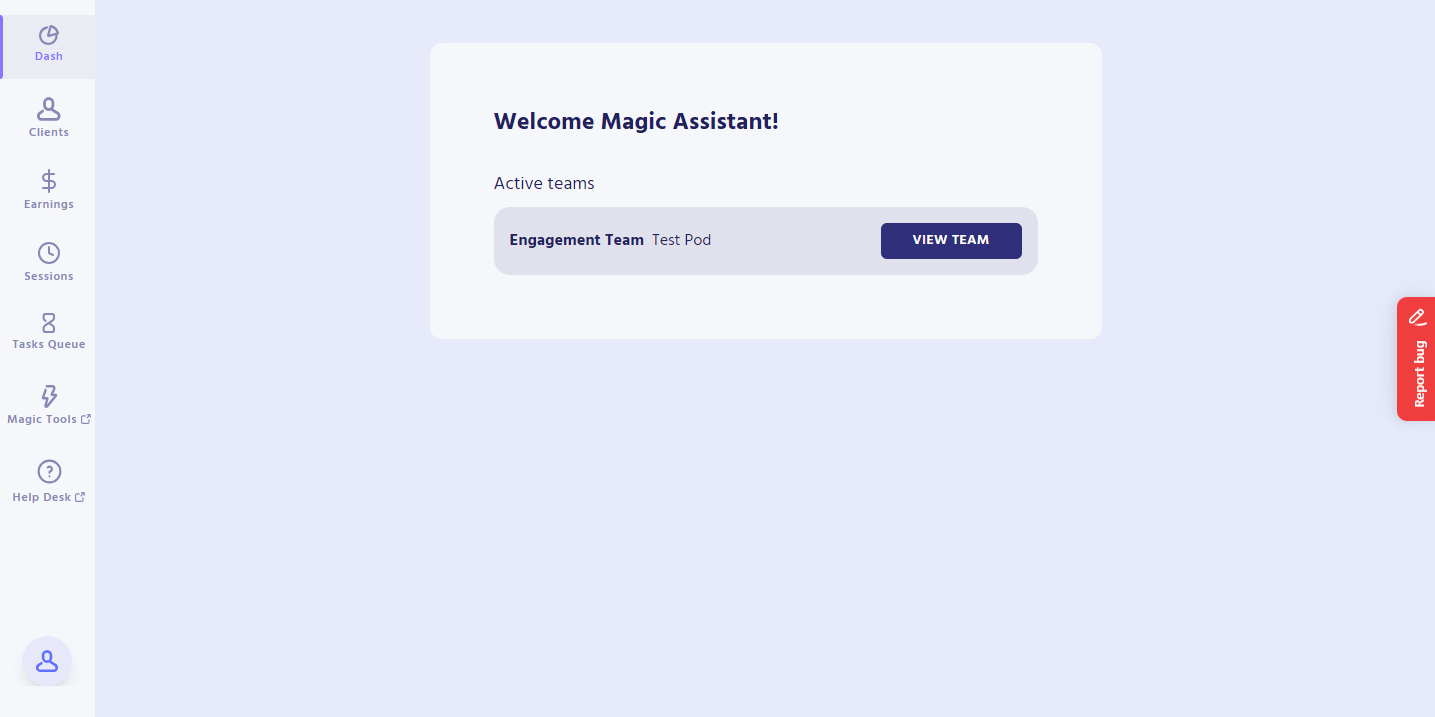 After signing into your Magic Workspace account, a banner will display the Active teams you are part of. A “team” represents a role you are assigned to. If you work with two different clients, you will have two active teams listed on your dashboard.