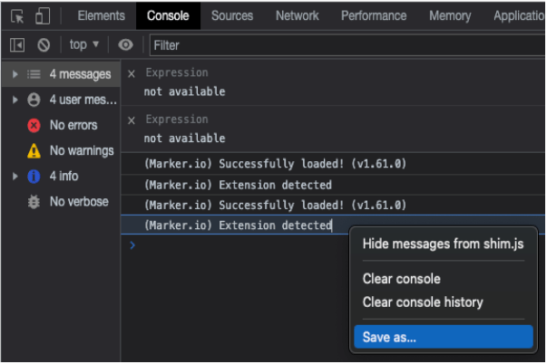Step 3. Next, click on the Console tab. You may then grab a screencap, or save it as a file by clicking on the log area. Right-click and click Save as as .LOG file (Text Document)
