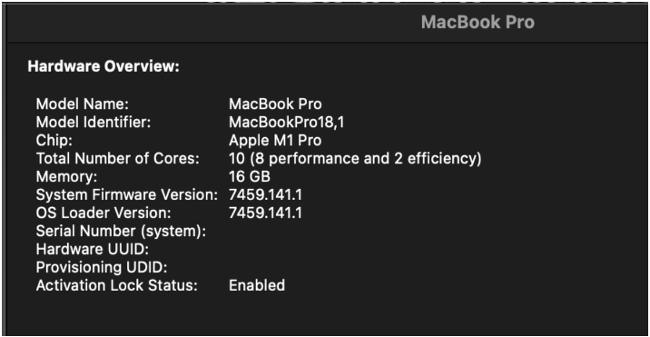 Step 2. Select About this Mac to display the information as shown below. It is advised that you blur/erase sensitive data like the Serial Number for added security